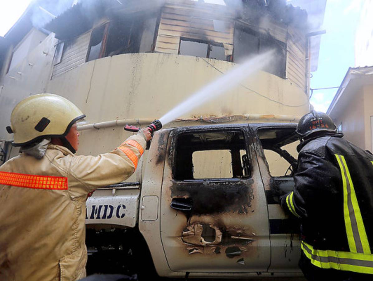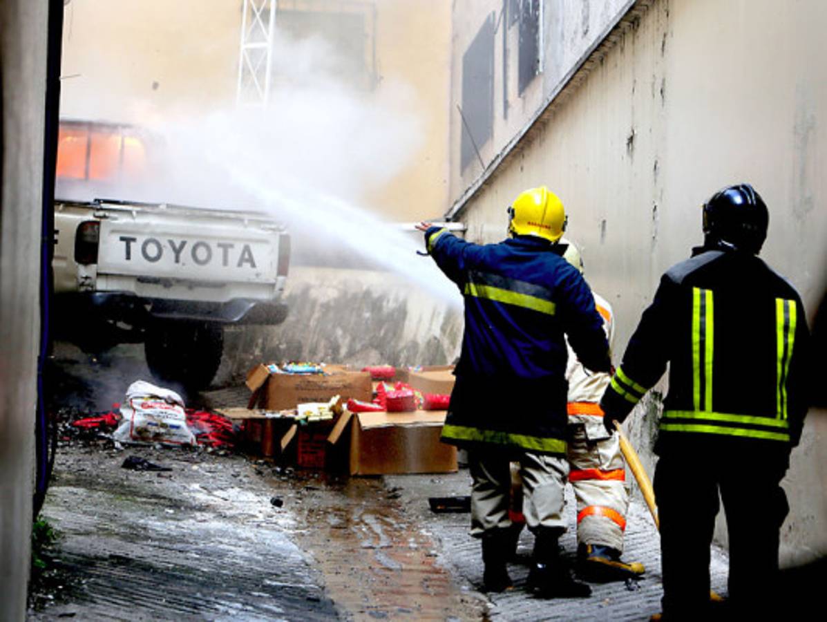 El fuego se desató cuando los trabajadores municipales descargaban una pólvora que había sido decomisada en la sexta avenida de Comayagüela, para depositarla en la bodega que se encuentra en el tercer piso del edificio.