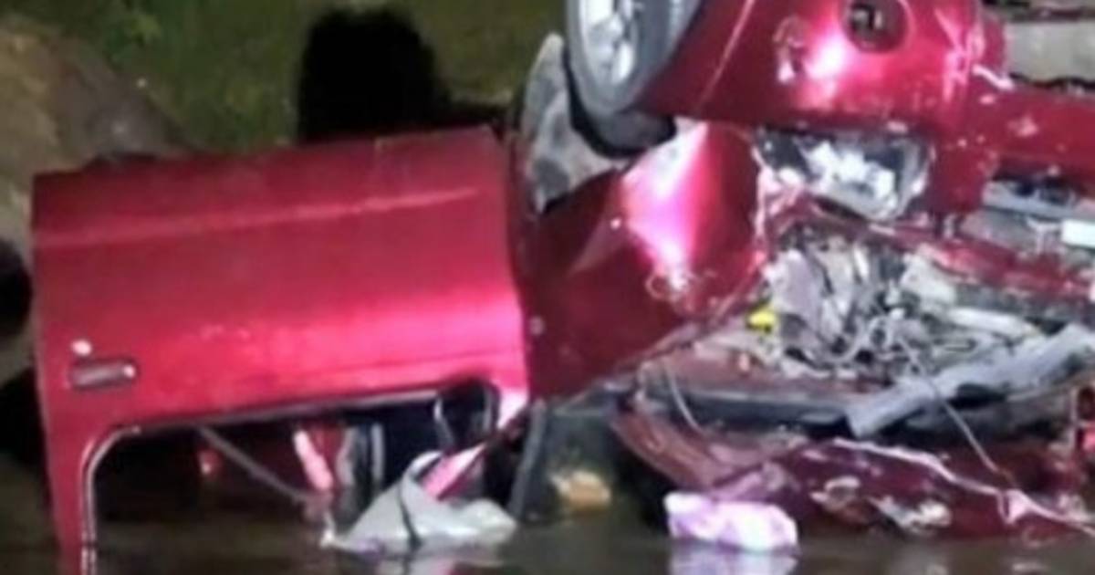 La mañana de este lunes familiares de los jóvenes llegaron hasta donde estaba el vehículo totalmente destruido y con una grúa lograron sacarlo del río.