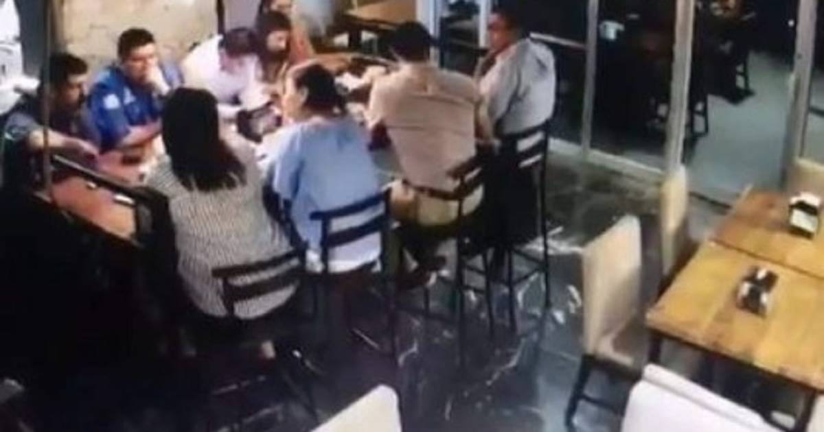 Los ocho amigos, sentados cuatro de frente a los otros, no notaron que al lugar ingresaron tres mujeres con actitud sospechosa, una se sienta cerca de su víctima, mientras estira el brazo para extraerle la billetera de su pantalón, sin que éste lo note.