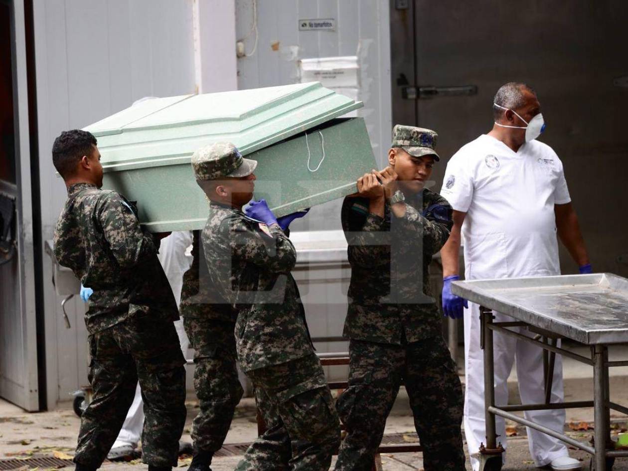 Guzmán siguió detallando que los cuerpos salen “desde la base Armando Escalón vienen en aeronaves de la Fuerza Aérea Hondureña, hacia la morgue vienen en ambulancias. Allá los va a recibir un médico forense que va a ser encargado en primera instancia de levantar los datos correspondientes para que aquí ya el personal médico... proceda a hacer la correspondiente autopsia. Ya están haciendo unos trámites documentales, se está avanzando para poder agilizar este proceso de autopsia”.