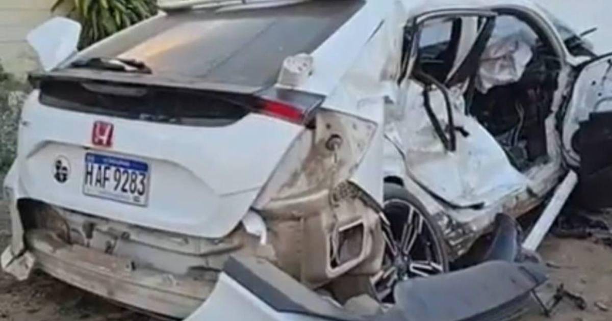 Tras el impacto, el automóvil quedó semidestruido a un costado de la carretera y con las dos víctimas atrapadas dentro.