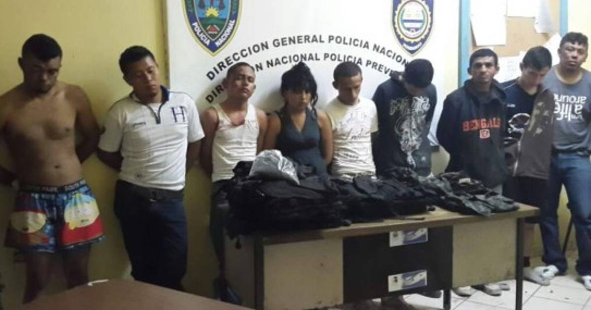 Los nueve detenidos por la Policía Nacional fueron identificados como Osman Yonathan Flores Chirinos (18), Marco Antonio Triminio Mejía (35), Ledy Said Galo Degrandez (22), Edwin Alexis Escoto Ramírez (30), Santos Elvin Carranza Enamorado (24), Jorge Adalid Lagos Rodríguez (25), Gladis Ferrera (25), Eder Alexander Amador (18) y Yeison Ariel López Flores (19).