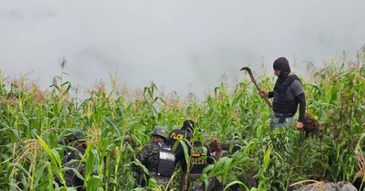 En el sector, ubicado al occidente de Honduras, las plantas de marihuana se camuflaban entre el sembradío de maíz, por lo que era difícil identificarlas.