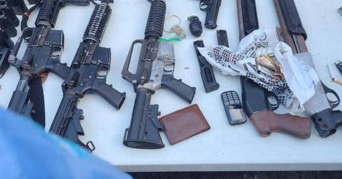 Al momento de su captura, se les decomisó cuatro fusiles calibre 5.56 milímetros, dos escopetas, siete cargadores, una granada de fragmentación, 42 cartuchos para escopeta y 259 proyectiles de 5.56 mm.