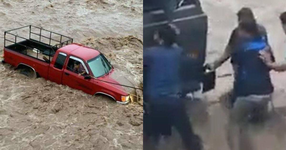 La pareja se encontraba en el interior de un vehículo tipo pick-up rojo, el cual quedó varado en el río cuya corriente azotaba de forma violenta.
