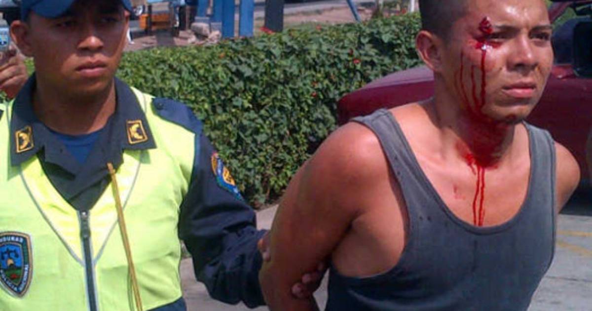El individuo Henry Escobar, de 23 años, supuesto cobrador de buses rapiditos del transporte urbano, fue llevado a las celdas de la Policía Metropolitana con un golpe en la ceja derecha y en otras partes del cuerpo.