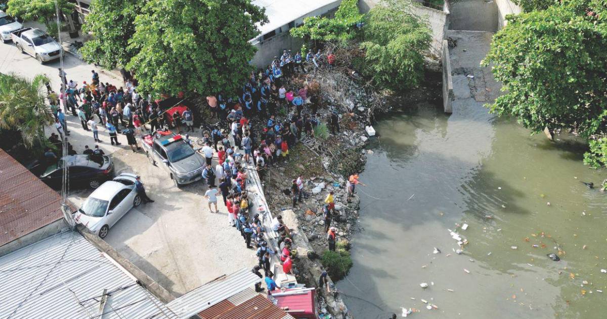 Una cuadrilla organizada por la municipalidad llegó hasta un crique en la 19 calle, 16 avenida, del barrio Cabañas, donde encontraron al inspector de policía Kevin Pérez Vargas.