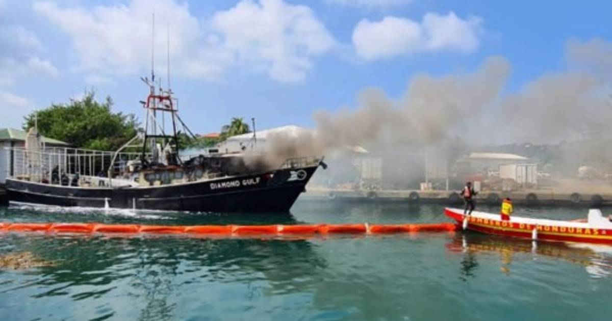 ROATÁN, HONDURAS.-El barco 'Diamond Gulf' volvió a tomar fuego varias horas después de que se registrará una explosión en la embacación este jueves.