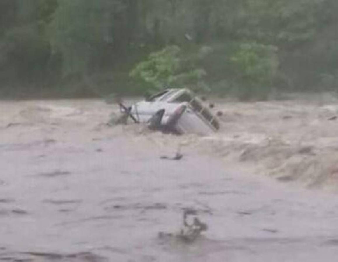 Una familia hondureña se salvó de milagro luego que su vehículo fuera arrastrado por las aguas de Río Arriba en Trujillo, Colón, costa norte del país, según un video difundido este domingo en redes sociales.