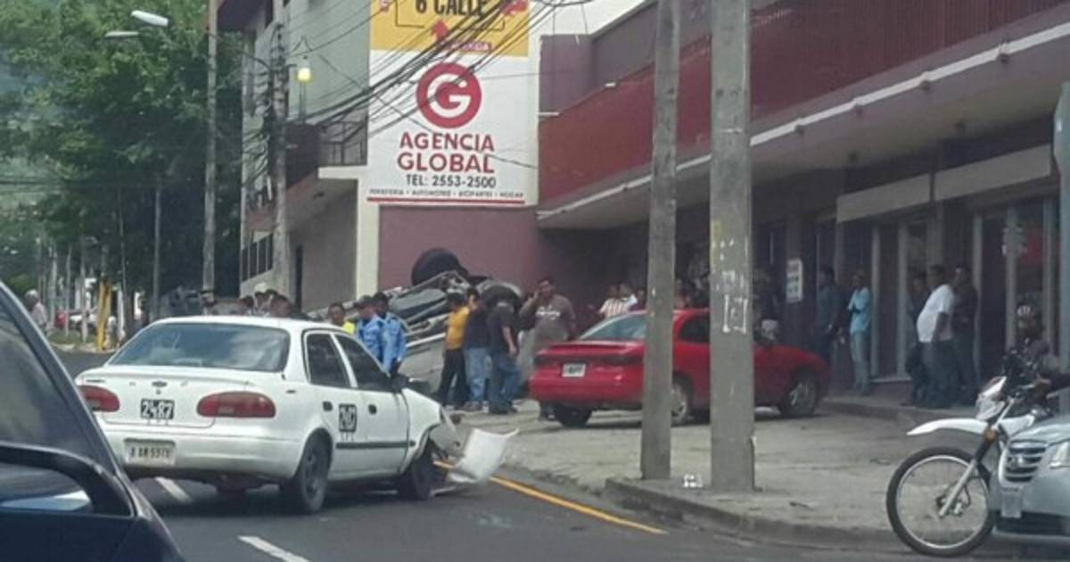 Con los nervios aún alterados, Claros explicó que el taxi trasitaba por la 7 calle de este a oeste y al llegar al cruce de la 11 avenida impactó con su carro y le dio vuelta, dejándolo con las llantas hacia arriba.