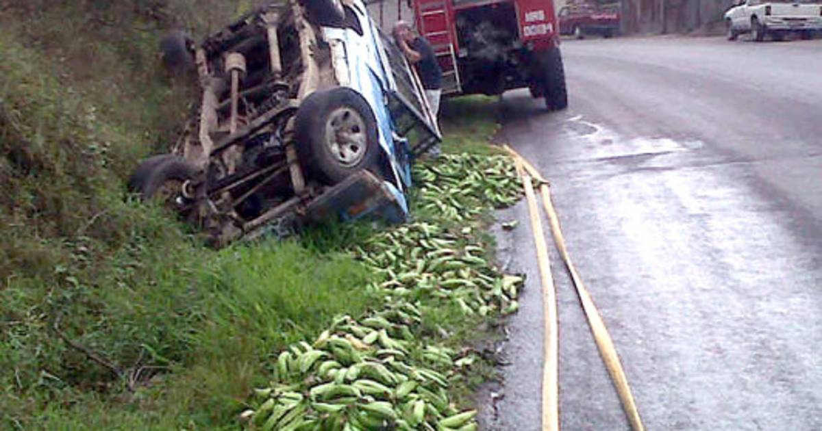 paila, color azul con placas PAG-2271 llevaba un cargamento de bananos verdes que quedaron dispersos en la orilla de la carretera.