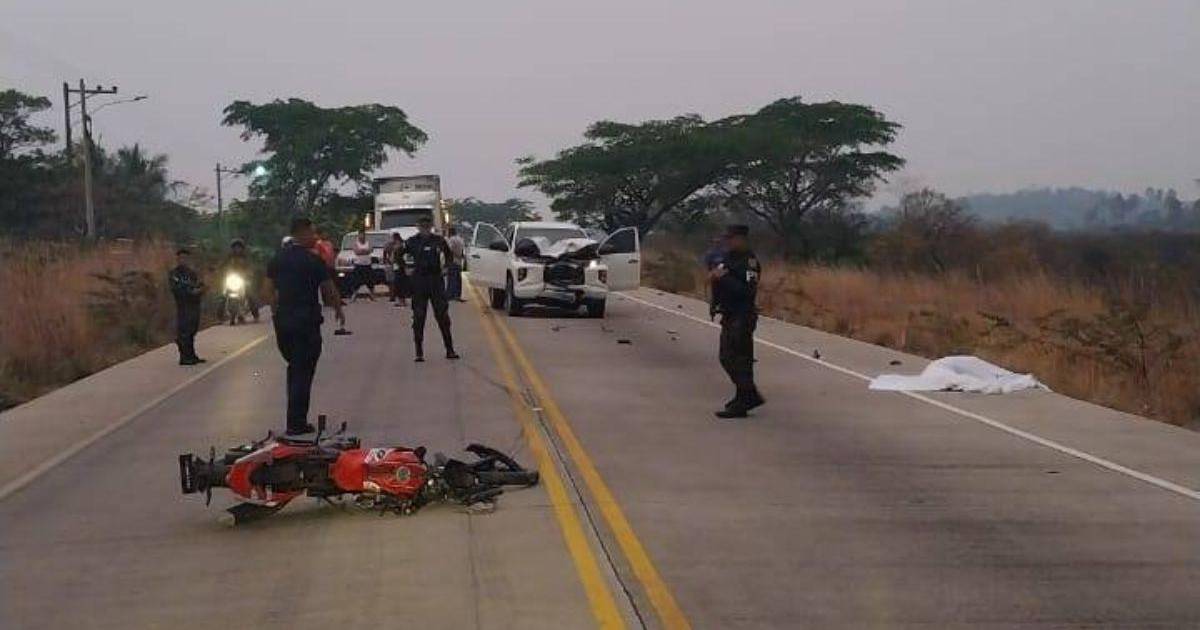 EL PARAÍSO, HONDURAS.-Una persona muerta fue el saldo de un brutal accidente entre un pick-up y una motocicleta en la carretera CA-6, en el desvío hacia Morocelí, El Paraíso, en el oriente de Honduras.