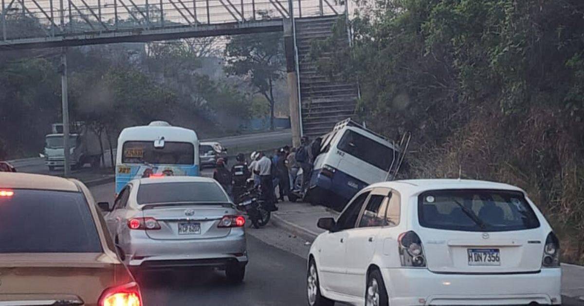 TEGUCIGALPA, HONDURAS.-Varias personas resultaron heridas la mañana de este miércoles luego de que un bus rapidito se saliera de la calle e impactará contra las gradas de un puente peatonal en el bulevar Fuerzas Armadas, en la capital hondureña.