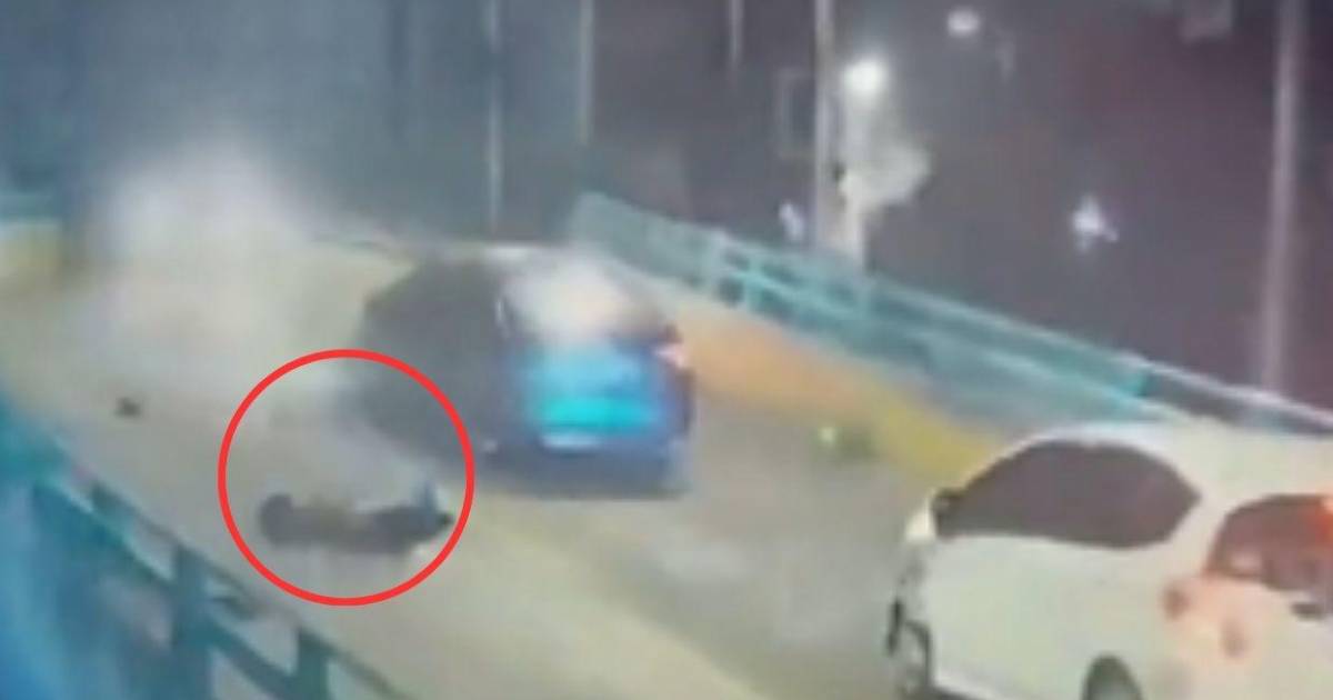 Las imágenes que circulan en redes sociales muestran el preciso instante en el que el joven prácticamente "salió volando" con todo y motocicleta tras el fuerte impacto.