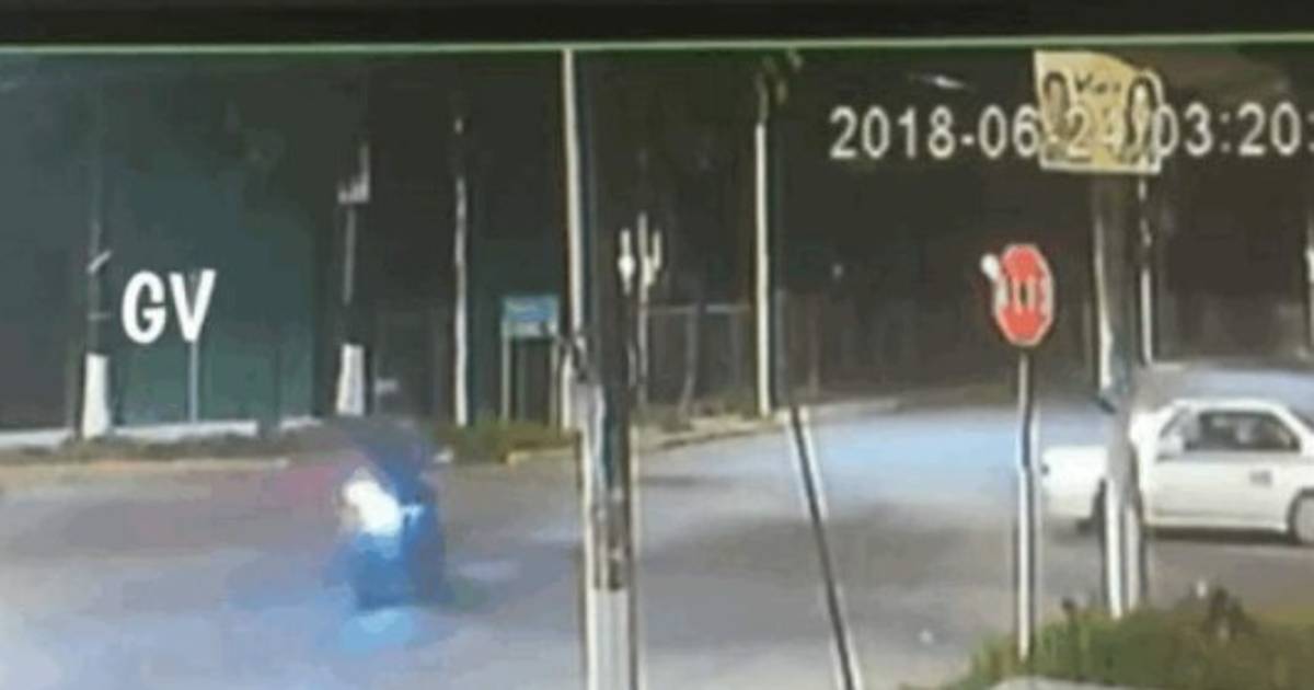 El hecho quedó grabado en las cámaras de seguridad ubicadas en la zona, donde se puede observar el momento en que el motociclista, que no respetó la señal del semáforo, fue brutalmente golpeado por un vehículo.