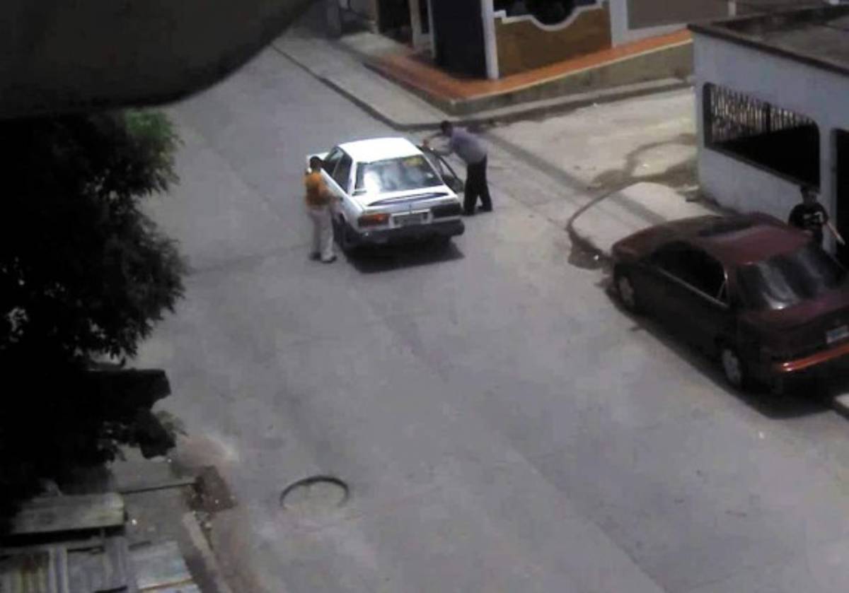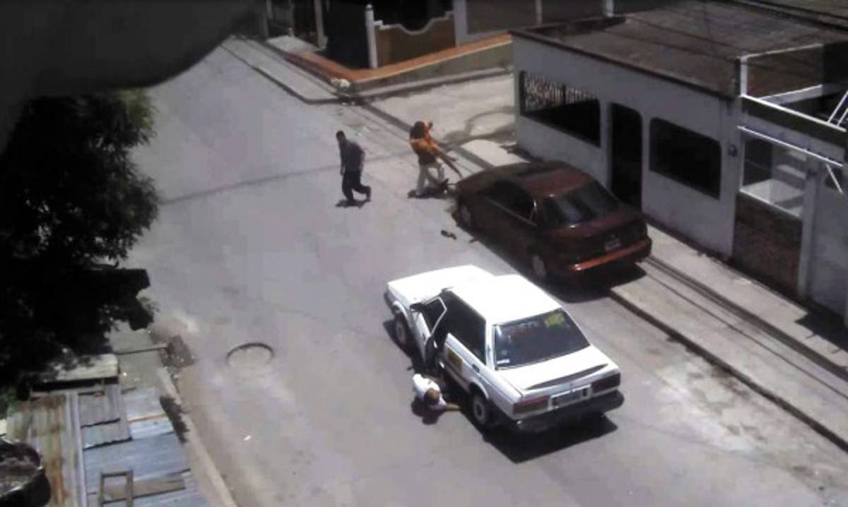 Dos de los cuatro delincuentes que participaron en el asesinato interceptan al taxista en la calle principal de la colonia El Pedregal y lo amenazan con pistolas. Los otros dos participantes permanecen dentro del taxi.