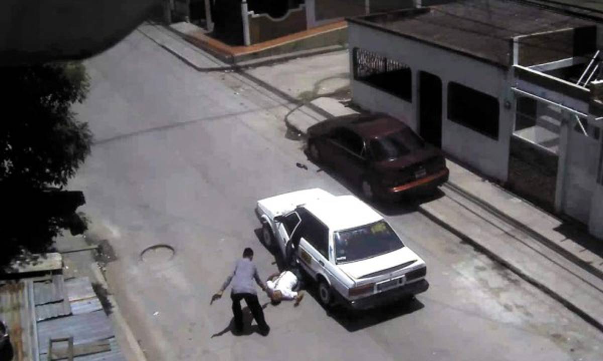 Uno de los delincuentes carga en sus brazos a la mujer que resultó con una herida de bala, y posteriormente la traslada al Hospital Escuela, donde estuvo ingresada. El taxista queda gravemente herido y tendido sobre la vía.