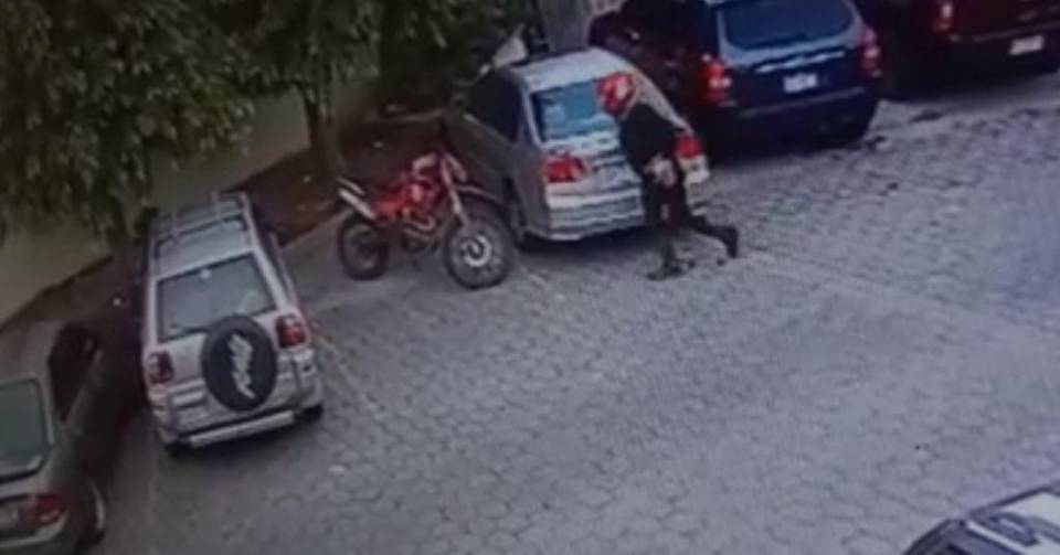 Todo sucedió el lunes 6 de junio a las 6:33 de la tarde. En el video se observa cómo un hombre -que llegó a bordo de una motocicleta- se baja del vehículo de dos ruedas, se acerca a uno de los carros estacionados y abre el capó, para posteriormente extraer la batería; segundos después lo vuelve a cerrar y se apresura para abordar de nuevo su motocicleta y huir.