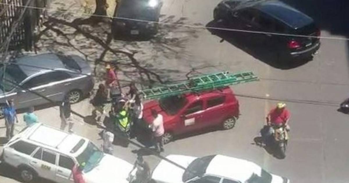 Con patadas y puñetazos el hombre es derribado del vehículo y luego se aleja de los agresores.