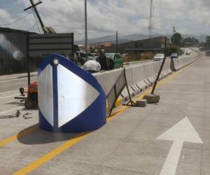 En las barreras de concreto, en cada extremo, se colocaron esquineros de alto impacto para evitar accidentes viales.