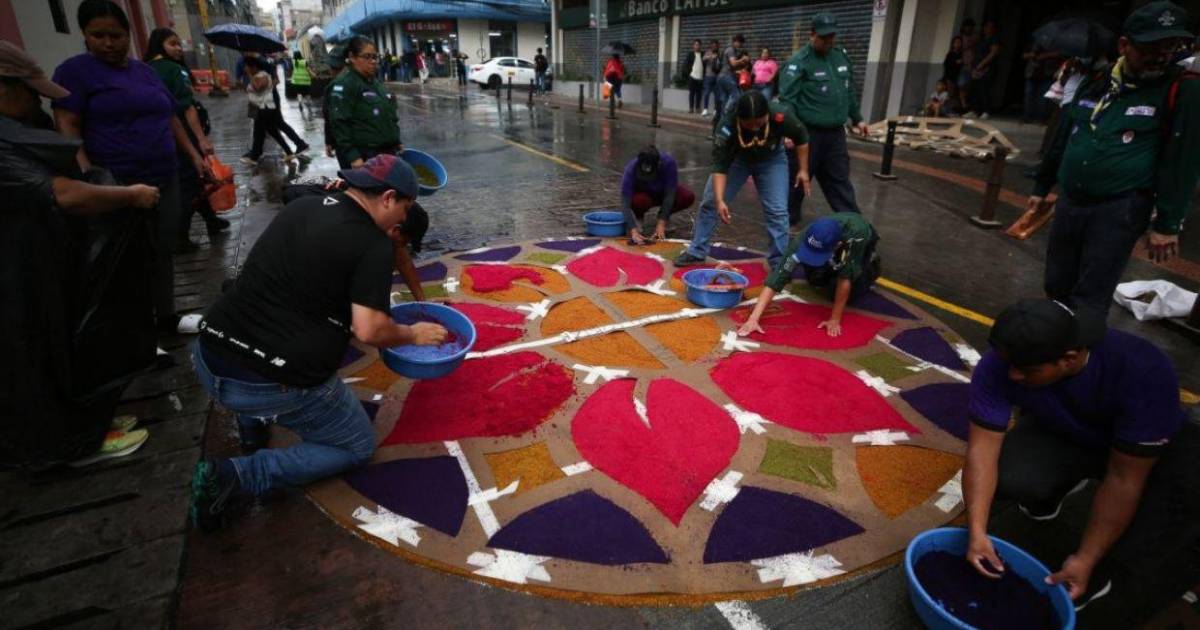 Los sacos de colores y el aroma del aserrín húmedo impregnan el aire del centro, recordando que, más allá de la técnica, lo que se plasma en el pavimento es una profunda manifestación de la espiritualidad hondureña.