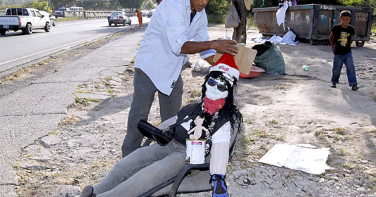 El año viejo fue confeccionado por un grupo de amigos que recolectan basura en este bulevar de la capital hondureña, a inmediaciones de la intersección con la colonia 21 de Febrero.