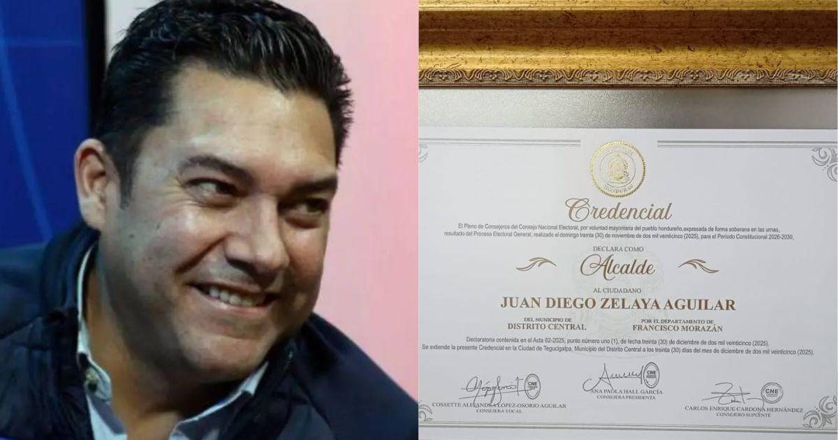 Tegucigalpa, Honduras.- El alcalde electo del Distrito Central, Juan Diego Zelaya, ya tiene en su poder la credencial que lo acredita oficialmente como el nuevo edil de este municipio.