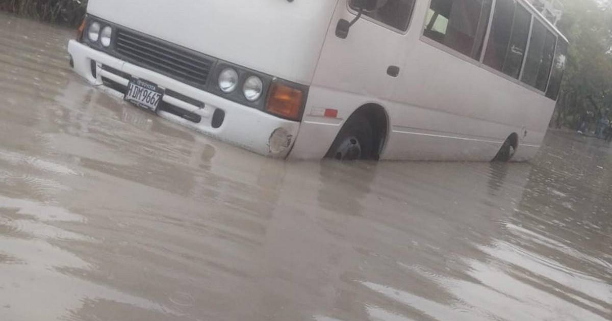 TEGUCIGALPA, HONDURAS.- Un bus de transporte escolar quedó momentáneamente atrapado la madrugada de este martes en medio de una calle inundada de Tegucigalpa, tras las copiosas lluvias registradas sobre la capital de Honduras.