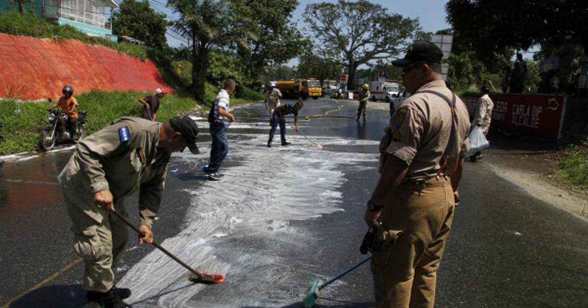 Para quitar el químico de la carretera, los bomberos utilizaron detergentes y con la presión del agua se logró eliminar la sustancia. Las autoridades detuvieron al vehículo cuyo destino final era Tocoa, Colón, mientras los bomberos investigan qué tipo de químico era el que se transportaba.