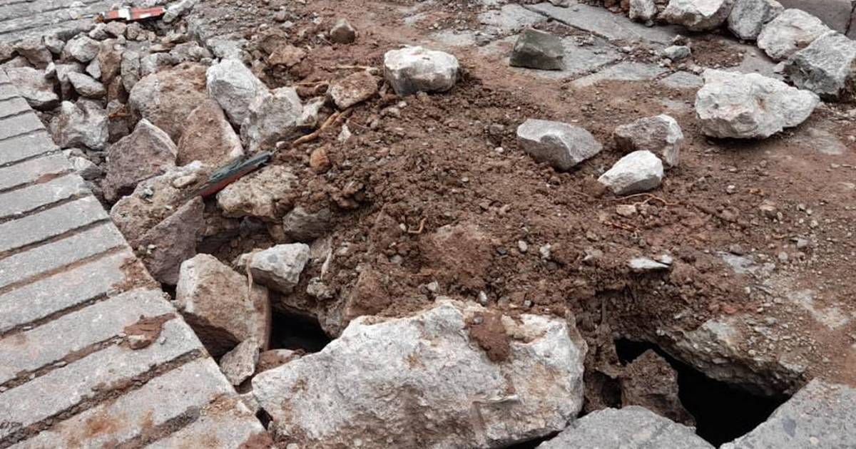 Imágenes compartidas muestran cómo la vía se ha ido partiendo y una sección del concreto se hundió por completo, provocando un serio peligro para los peatones y conductores que transitan por la zona.