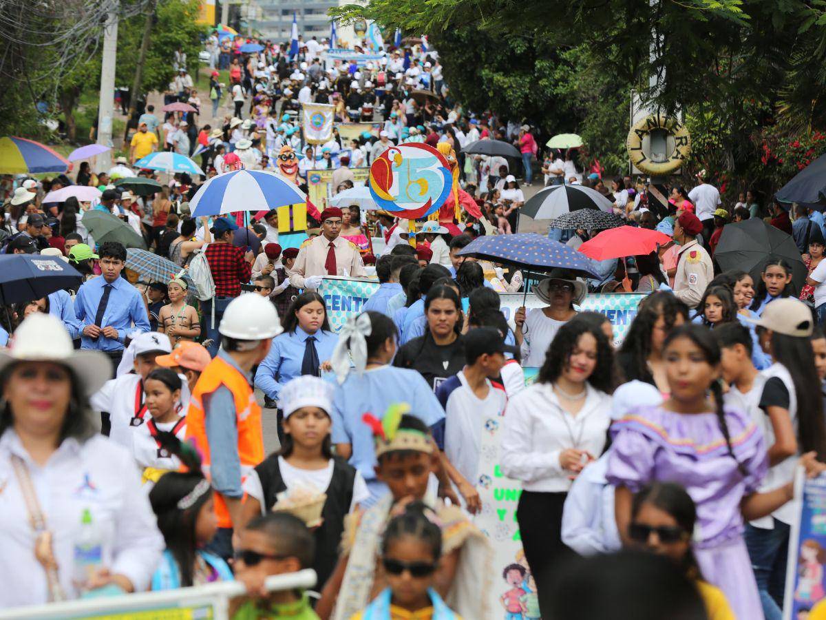 TEGUCIGALPA, HONDURAS.- Bajo un cielo azul iluminado por un radiante sol, las 15 escuelas que conforman el distrito 14 rinden honor este domingo con desfiles llenos de amor y fervor a la patria como parte de la festividad patriótica que recuerdan los 203 años de independencia.