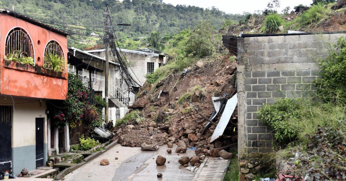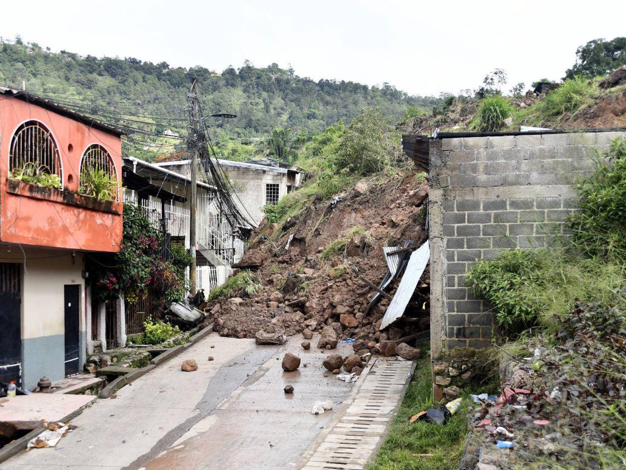 Tegucigalpa, Honduras.- El crujir de las láminas y las enormes piedras cayendo sobre el pavimento mantienen en vela, día y noche, a los vecinos de El Reparto por Bajo, quienes, en cualquier momento, podrían perder sus viviendas por el derrumbe que los acecha.