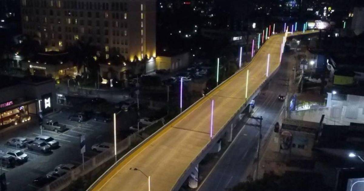 Tegucigalpa, Honduras.- El puente a desnivel Bicentenario, ubicado en el bulevar San Juan Bosco del Distrito Central, ya cuenta con un nuevo sistema de iluminación que mejora la visibilidad para los conductores en horas nocturnas.