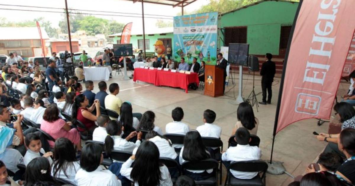 Niños de escuela Guaymuras en campaña de escuelas amigables con el ambiente.