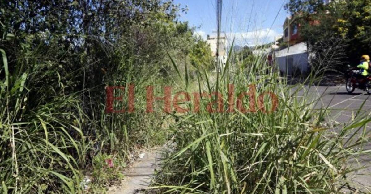 TEGUCIGALPA, HONDURAS.- Colmada de maleza permanece una acera de la
