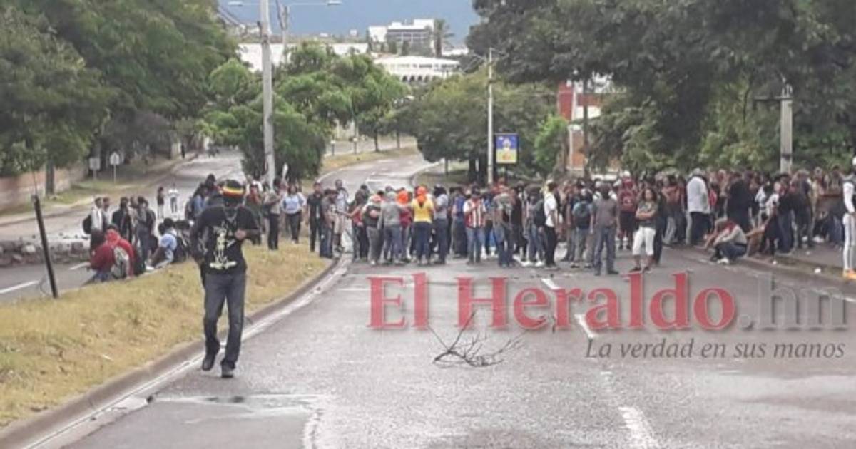 TEGCUIGALPA, HONDURAS.-Un grupo de encapuchados cerró la tarde de este lunes el paso vehicular en el