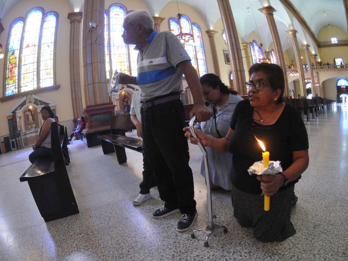 TEGUCIGALPA, HONDURAS.- Desde la entrada de la basílica hasta el altar de la Virgen de Suyapa es un largo trayecto, donde las personas pagan sus promesas de fe, avanzando de rodillas sin importar la edad.