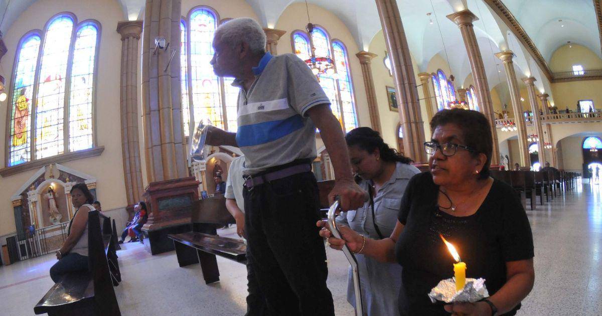Antes de que las campanas de la basílica repicaran las 12:00 del mediodía, una familia de tres generaciones, agarrados unos de otros avanzaban con paso lento pero seguro hacía la Patrona de Honduras.