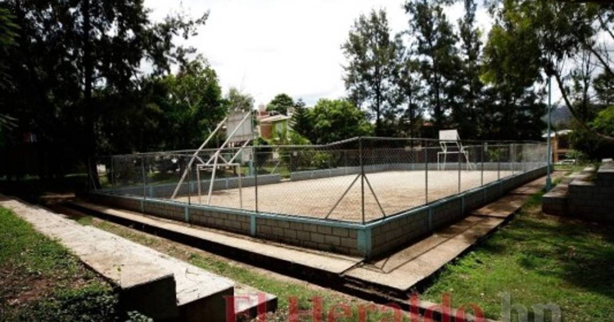 TEGUCIGALPA, HONDURAS.- El área verde, en la que se encuentra una cancha de usos múltiples, ubicada en la primera etapa de la colonia Villa Universitaria permanece arropada por la oscuridad.