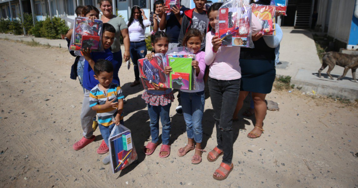 “Gracias por venir hasta aquí y traernos cuadernos y colores”, expresó la pequeña Nahomy López mientras sostenía sus nuevos útiles.