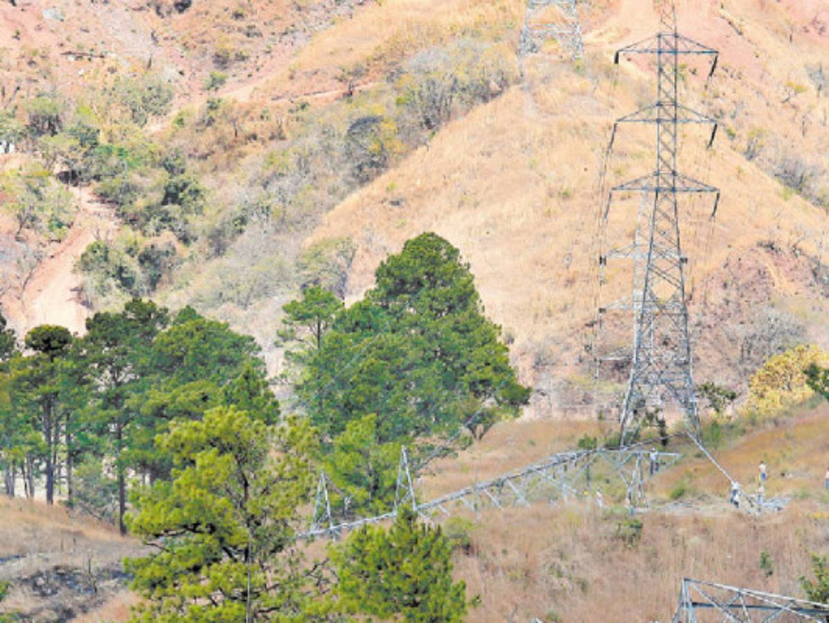 La torre afectada solo estaba sostenida por los cables de alta tensión, por lo que los técnicos de la Empresa Nacional de Energía Eléctrica (ENEE) no descartan que pueda ceder en cualquier momento.