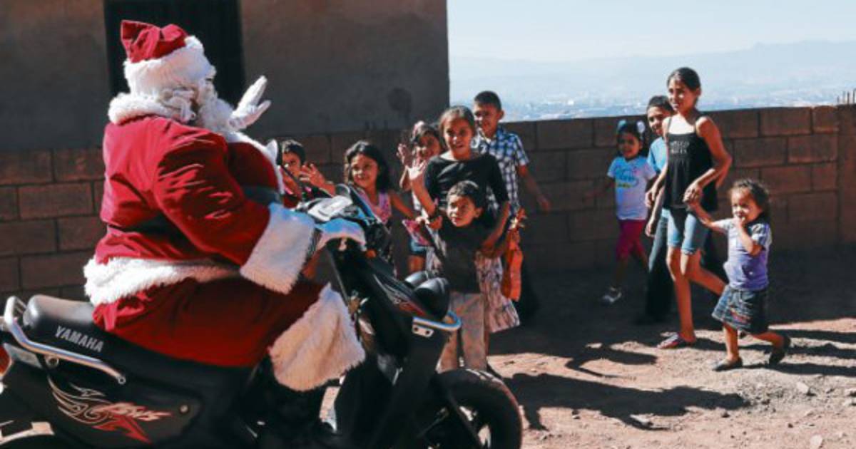 Y como en Tegucigalpa la nieve no impediría que él pisara tierra para entregar juguetes, abandonó su trineo tirado por nueve renos mágicos para irrumpir en motocicleta en los barrios y colonias de la capital.