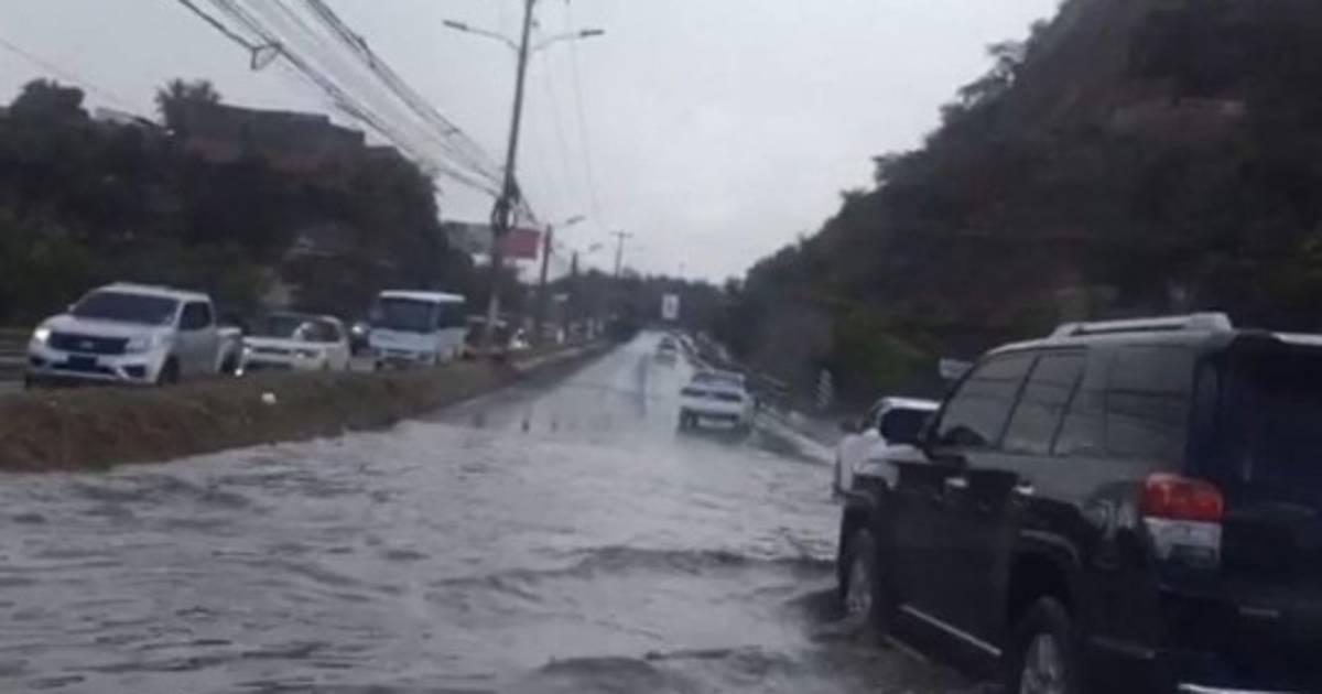 TEGUCIGALPA, HONDURAS.- Calles inundadas y vehículos atascados fue el resultado de la fuerte lluvia que se registró la tarde de este sábado a la altura del sector sur del anillo periférico de Tegucigalpa.