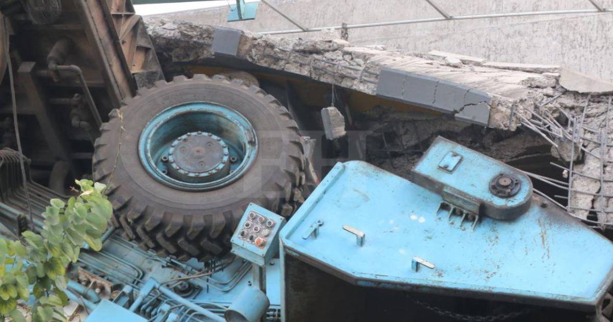 Las imágenes muestran cómo la estructura se desploma abruptamente mientras la maquinaria aún se encontraba sobre ella.