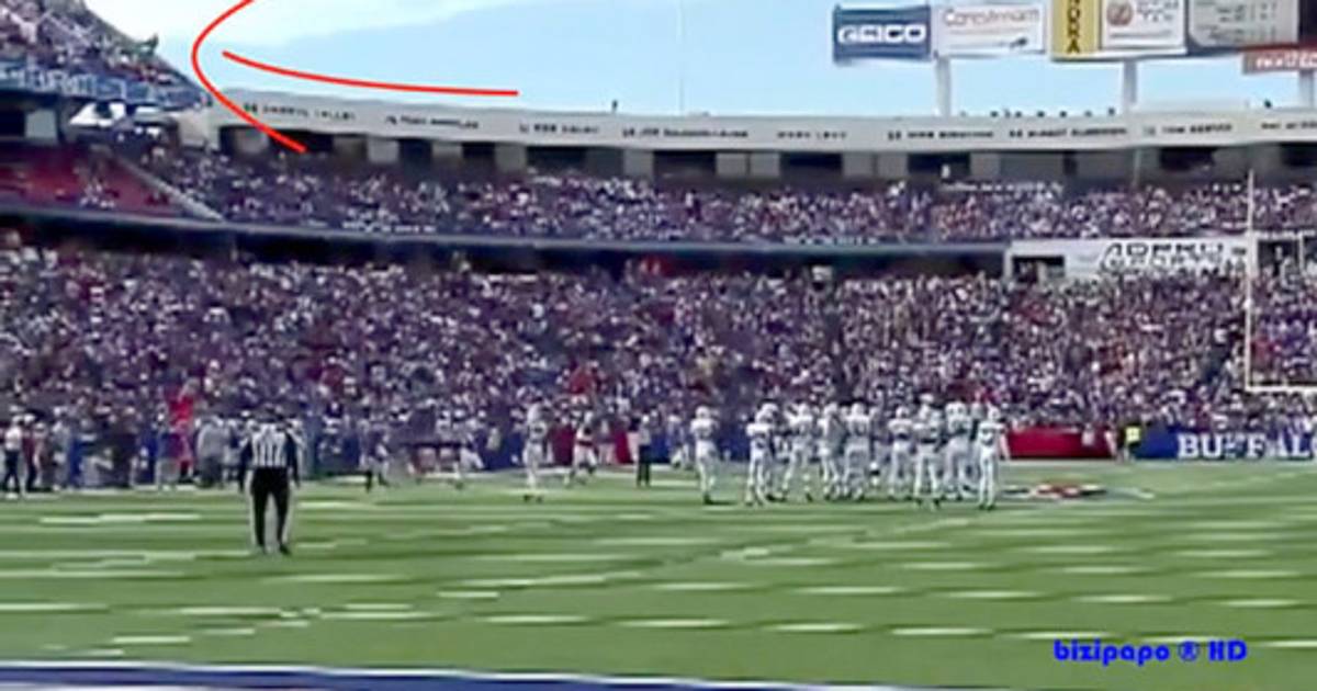 La estrepitosa caída fue captada durante un partido de fútbol americano en el Ralph Wilson Stadium, sede del equipo profesional Bffalo Bills de la NFL.