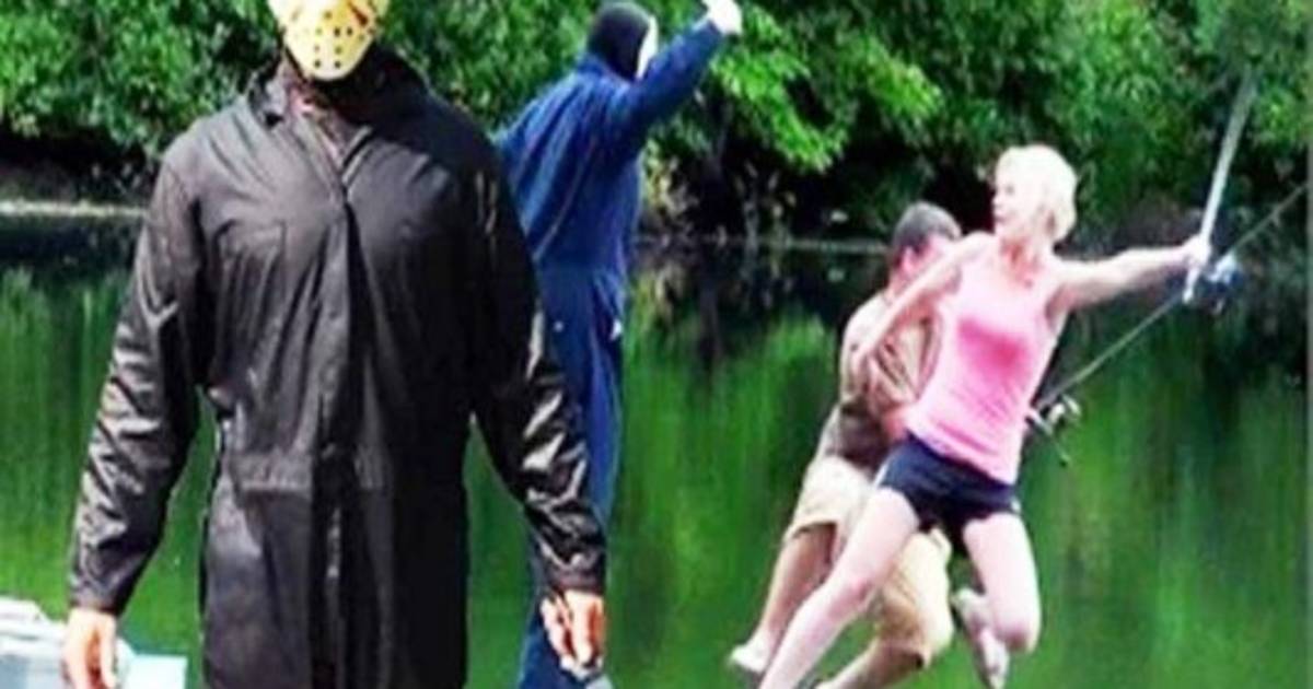 Un sujeto disfrazado de Jason el asesino asustó a campistas desprevenidos en un lago e incluso hace que un hombre abandone a su pareja y la empuje al lago.