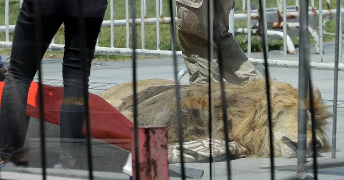 SANTIAGO DE CHILE, CHILE.- El cuerpo sin vida de Zeus, un león de 14 años, fue arrojado en frente del palacio presidencial chileno, en el centro de Santiago, como protesta tras un fallido procedimiento de fiscalización en un zoológico.