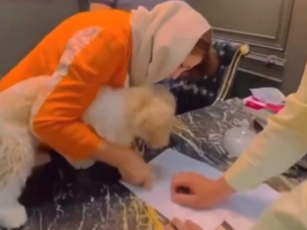 Según las imágenes, el perrito blanco, colocado frente al escritorio del agente inmobiliario, firma el contrato con la ayuda de la mujer, que sella el documento con la huella del animal, agarrándole la pata.