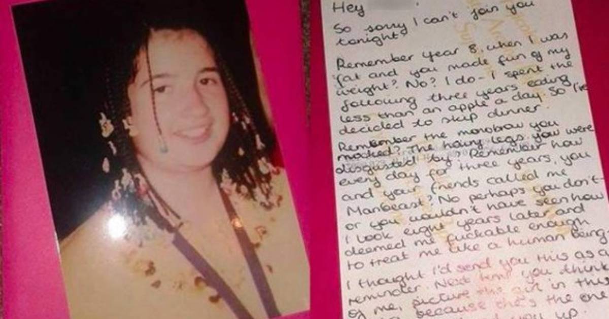 Ahora tiene 22 años. Ya no es aquella niña. Y fue tal su cambio que su antiguo tormento la contactó en Facebook para tener una cita con ella. La respuesta a esta invitación fue insólita: fue al lugar donde quedaron de verse y lo plantó con una contundente carta.