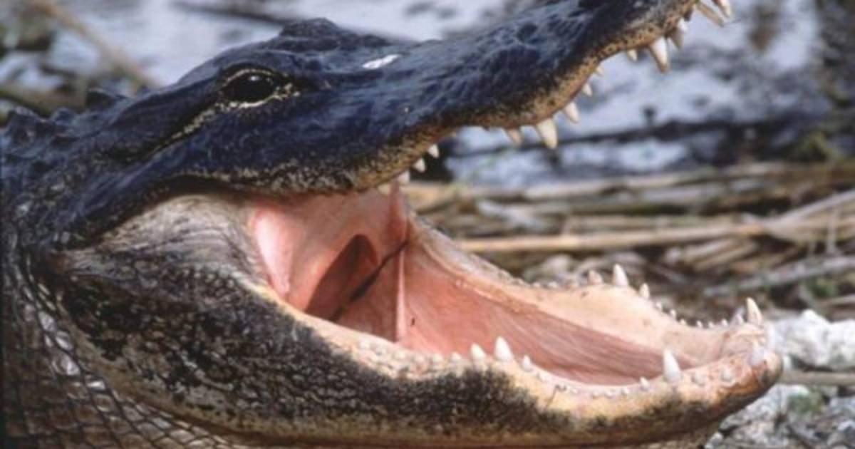 Un caimán estaba comiéndose a un hombre cuando fue descubierto por dos pescadores en un canal al borde de los pantanos de Florida.